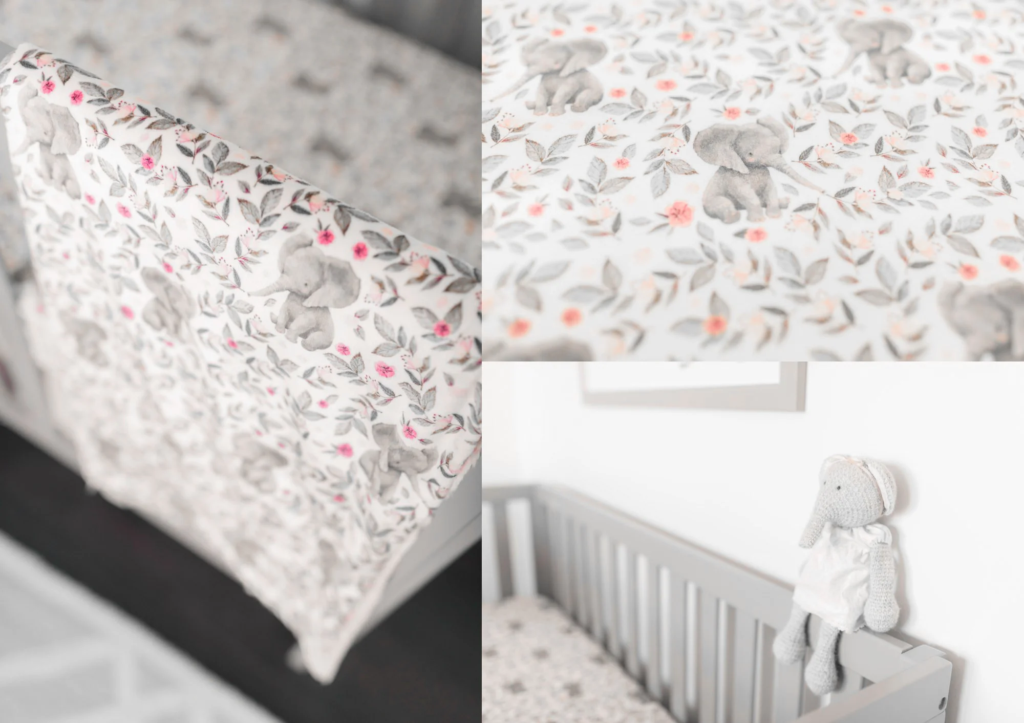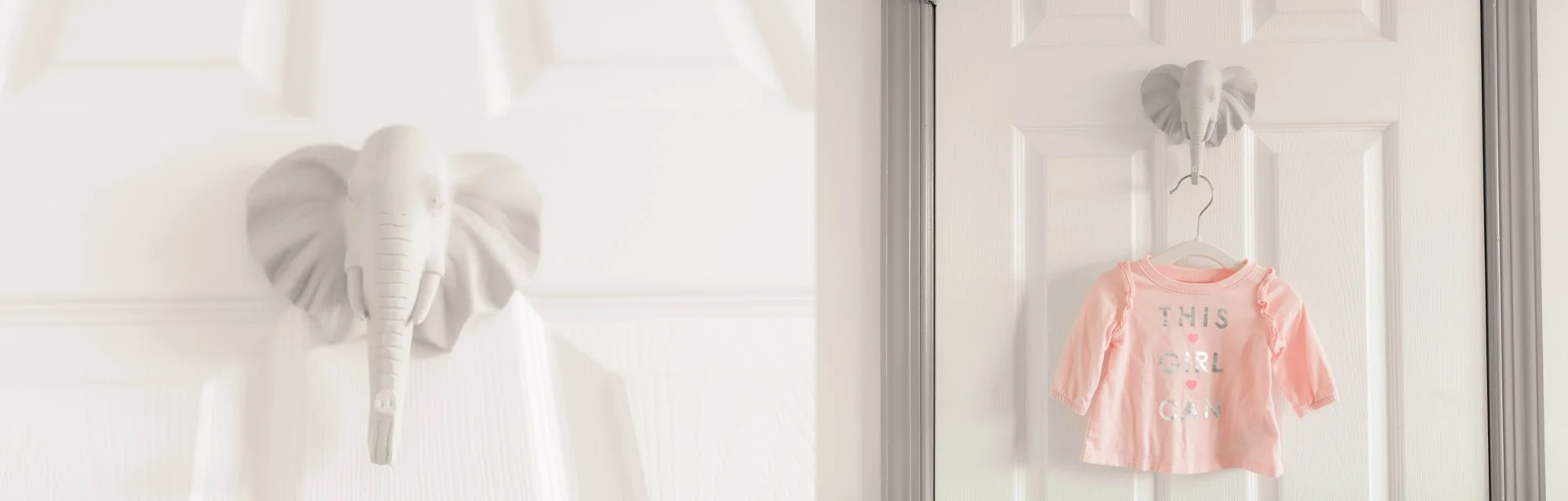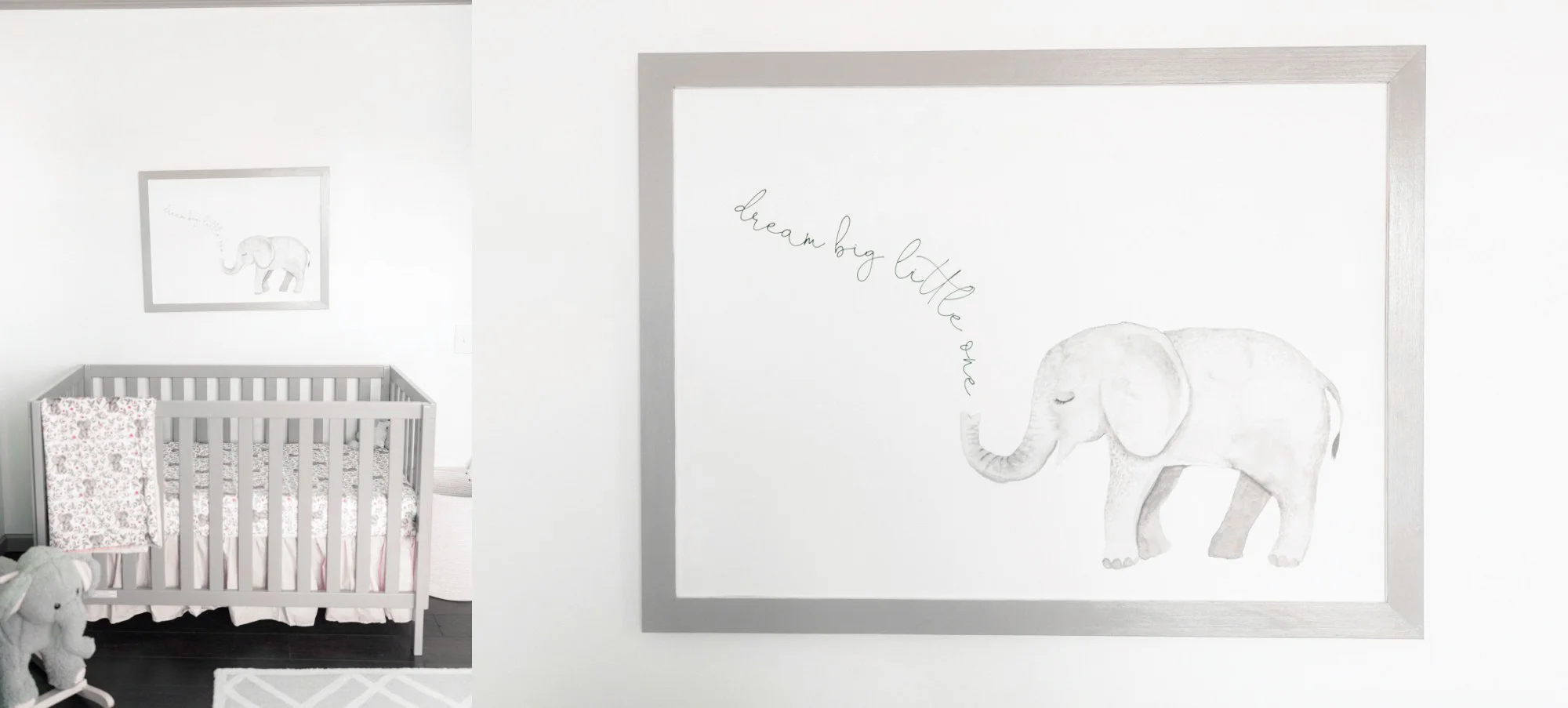 I had the sweetest moment today, photographing my own nursery that I put so much love and light into for our sweet baby girl, due any day now! We started trying for her in 2011 - and this year were surprised with our beautiful little perfect gift from the universe. I always knew I wanted an elephant nursery, but also wanted to keep it sweet and simple. The bedding is fabric I had printed at Spoonflower, and one of my fabulous clients Cori turned it into crib sheets, blankets, and changing pad covers for me. Her furniture is a mix of Target, Ikea, HomeGoods and a 1920’s refinished bookshelf. The sweet little elephant rocker was from a local mom’s group passed on. Some of the artwork came custom from Etsy, other things from Hobby Lobby. Her crochet elephant lovie came handmade from Great Britain! My husband worked really hard putting up the crown molding, painting, assembling furniture, and hanging everything for me. I couldn’t be more thrilled with the end result. The only thing to make this room complete (besides baby girl!) is a custom watercolor piece that’s being worked on, and the letters of her name (which we have kept a secret for just us!)